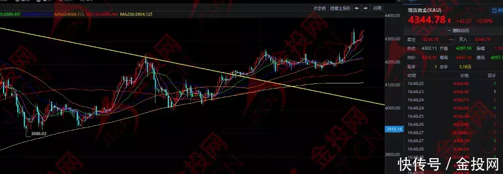 上周五,现货黄金表现出色,现货黄金上涨0.48%,收报4300美元附近,盘中最高触及4353美元,这是自10月21日以来的最高水平。今日欧市盘中,黄金小幅上涨,目前在4346美元附近徘徊。